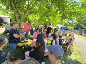 Der FGV Marktredwitz hatte auch 2025 wieder zu seiner Familienwanderung „zwischen den Jahren“ eingeladen. Am 28.12.2025 machte sich eine fröhliche Gruppe aus 23 Wanderern im Alter zwischen 4 und 83 Jahren auf den Weg von Leutendorf nach Kleinwendern. Am Dorfteich ging es bei strahlendem Wetter um 13:00 Uhr los. Ein steiles Wegstück ist gleich zu Beginn zu bewältigen. Dann durch den Wald und schließlich der schöne Blick auf Kleinwendern, das gemütliche Dorf mit den vielen Tieren. Unten angekommen erwarten uns schon Herr Bertholdt und Herr Brasavs vom Archedorf. Wir lernen, dass in diesem Dorf frühere Nutztierrassen erhalten werden, die heute von der Bildfläche verschwunden wären, da sie den Anforderungen der modernen Nutztierhaltung nicht mehr gerecht werden. Neben den Hühner, Gänsen, Kaninchen Schafen und Meerschweinchen haben die Rinder die Herzen der Kinder und Erwachsenen erobert. Das Rote Höhenvieh lebt das ganze Jahr hindurch draußen auf einer riesigen Weide.