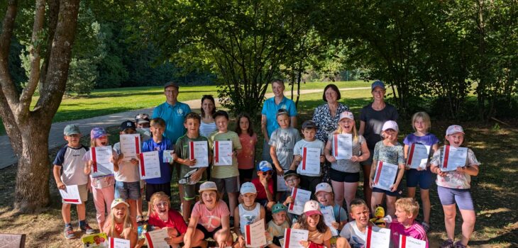 Zurück am Spielplatz wurden alle Kinder mit Eis am Stiel erfrischt und bei einer kleinen Siegerehrung mit Sachpreisen für ihren Einsatz belohnt. Stolz nahmen alle ihre Teilnahmeurkunden in Empfang.