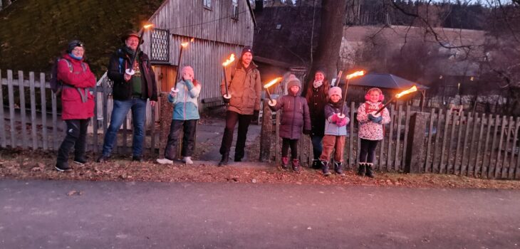Im Stüberl saß man bei Punsch noch gemütlich zusammen. Den Rückweg bestimmte jeder selbst. Eine kleine Gruppe wartete auf den Einbruch der Dunkelheit und machte sich dann mit Fackeln auf den Rückweg.