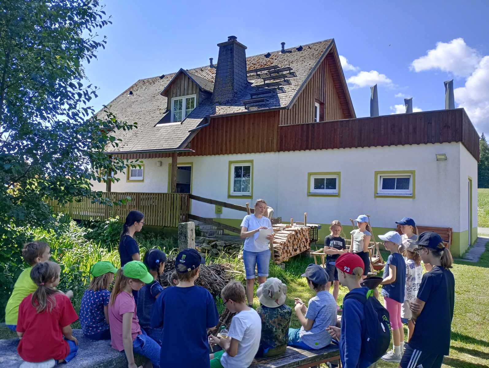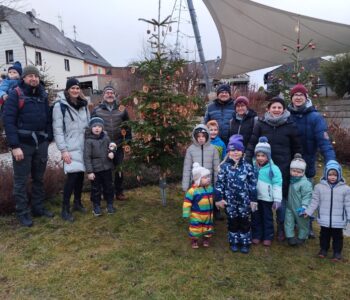 Der FGV Marktredwitz hatte auch 2025 wieder zu seiner Familienwanderung „zwischen den Jahren“ eingeladen. Am 28.12.2025 machte sich eine fröhliche Gruppe aus 23 Wanderern im Alter zwischen 4 und 83 Jahren auf den Weg von Leutendorf nach Kleinwendern. Am Dorfteich ging es bei strahlendem Wetter um 13:00 Uhr los. Ein steiles Wegstück ist gleich zu Beginn zu bewältigen. Dann durch den Wald und schließlich der schöne Blick auf Kleinwendern, das gemütliche Dorf mit den vielen Tieren. Unten angekommen erwarten uns schon Herr Bertholdt und Herr Brasavs vom Archedorf. Wir lernen, dass in diesem Dorf frühere Nutztierrassen erhalten werden, die heute von der Bildfläche verschwunden wären, da sie den Anforderungen der modernen Nutztierhaltung nicht mehr gerecht werden. Neben den Hühner, Gänsen, Kaninchen Schafen und Meerschweinchen haben die Rinder die Herzen der Kinder und Erwachsenen erobert. Das Rote Höhenvieh lebt das ganze Jahr hindurch draußen auf einer riesigen Weide.